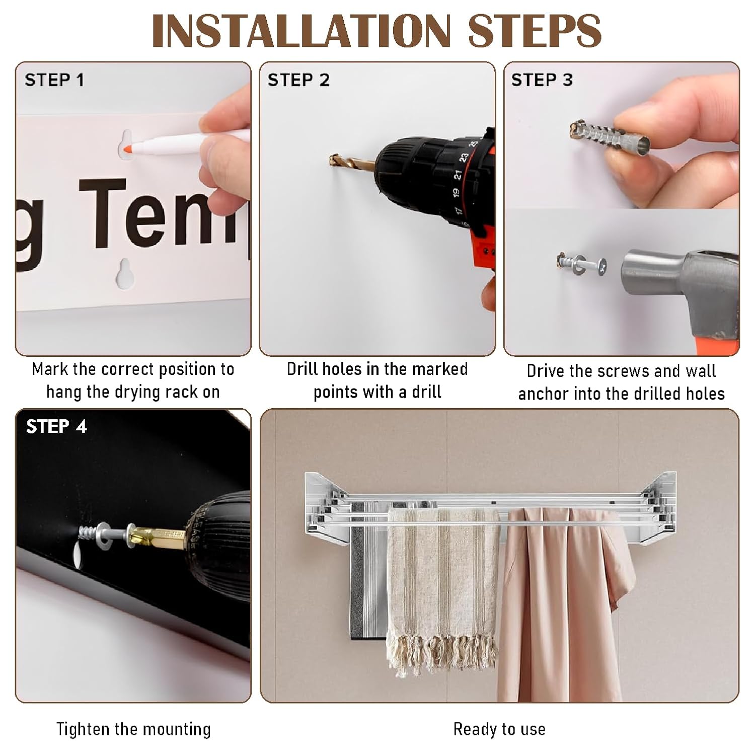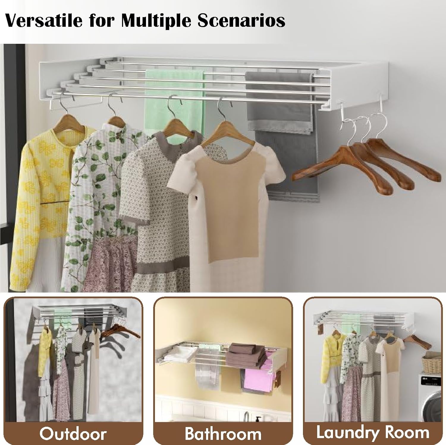 Metal Foldable Wall Mount Clothes Hanger/Cloth Drying Stand for Balcony with 5 Rods/Collapsible Clothes Drying Rack for Laundry/Space Saver/Indoor/Outdoor(Grey)