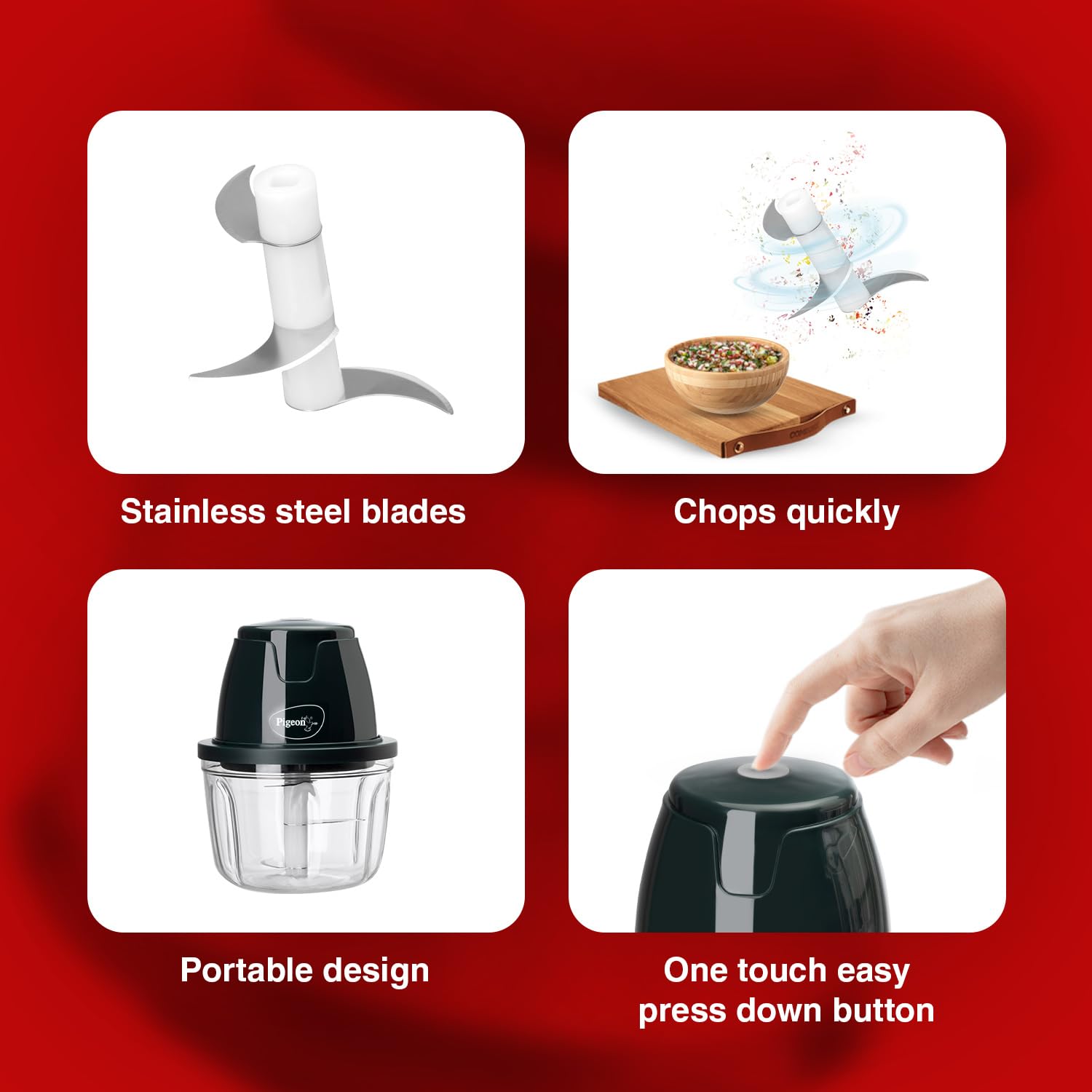 Pigeon Zoom Electric Chopper 350 ml, Portable with 3 Stainless Steel Blades for Effortlessly Chopping Vegetables and Fruits - Green, 30 Watts